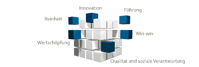 Qualität und soziale Verantwortung: Orientierung hin zu einer nachhaltigen Wirtschaft, die für ihre Werte einsteht und einen Wandel möglich macht. Verpflichtung der Umwelt und der Zukunft gegenüber.